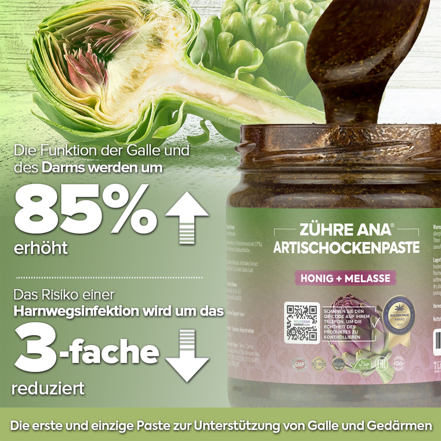 Unser Enginar Macunu wird aus hochwertigen, natürlichen Zutaten hergestellt und enthält Enginarextrakt sowie andere gesundheitsfördernde Pflanzen wie Devedikeni (Silybum marianum) und Frenk Kimyonu. Enginar ist bekannt für seine positive Wirkung auf die Leber, Nieren und das Verdauungssystem und ist ein reichhaltiger Quell von Ballaststoffen, Vitaminen und Mineralstoffen.