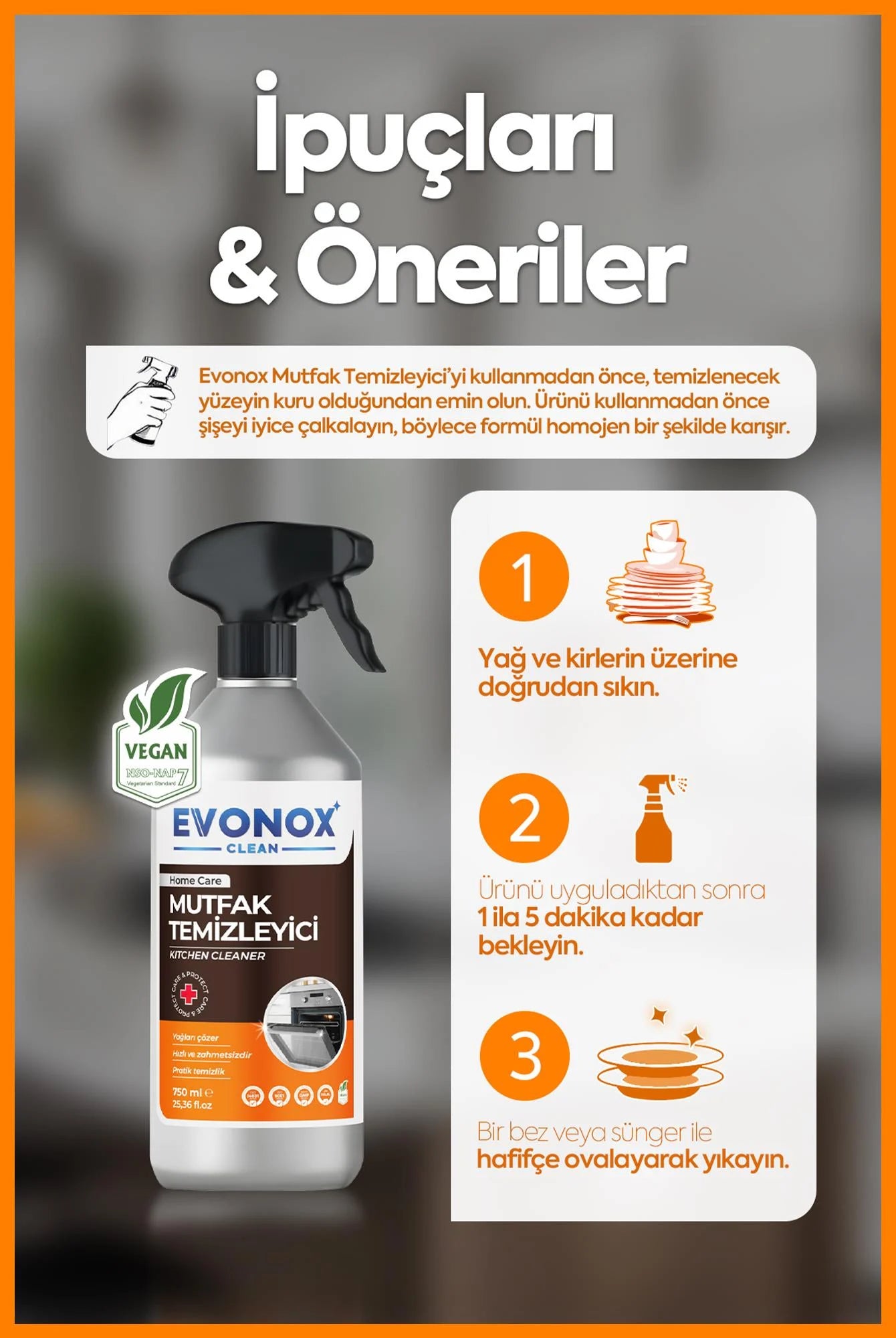 Evonox Clean Ultra Güçlü Mutfak Yüzey Temizleyici ve Yağ Sökücü Limon Kokulu Sprey ( Ultra Starker Küchenreiniger & Fettlöser – Zitronenduft ) 750 ml