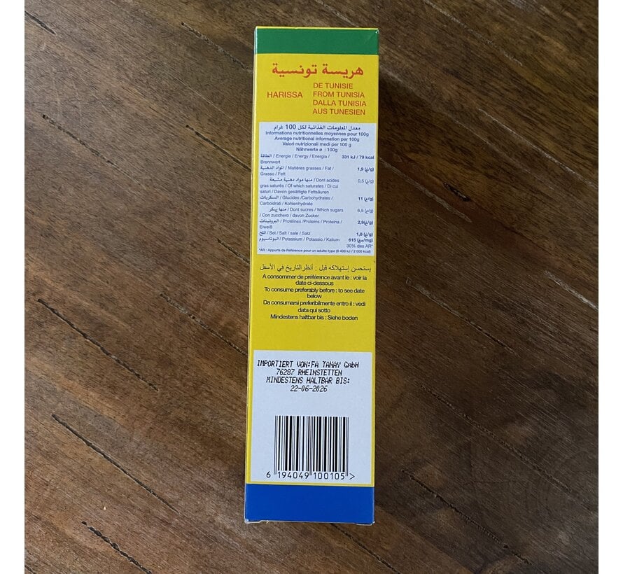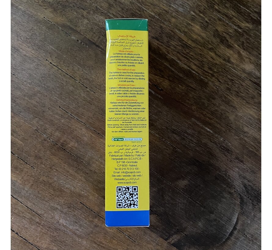 Harissa, Tunus mutfağının vazgeçilmez yancılarındandır.Tunus’un ana çeşnisi olarak da adlandırılan bu acı biber ezmesini kurutulmuş biber, tuz, sarımsak ve zeytinyağı gibi malzemelerle hazırlanmıştır.