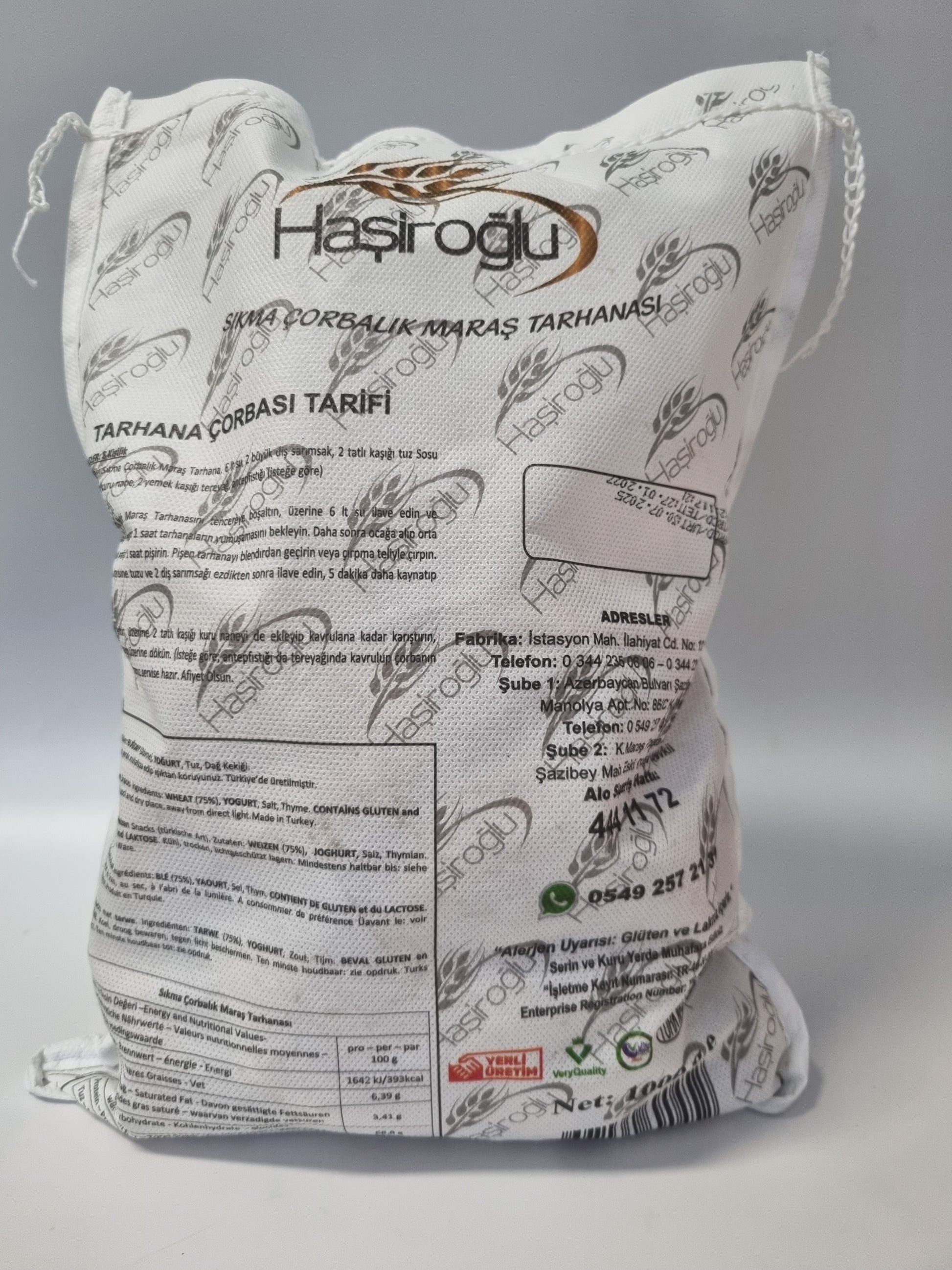 Die Haşiroğlu Sıkma Çorbalık Tarhana ist eine traditionelle Türkische Spezialität aus der Region Maraş, hergestellt durch die Fermentation von Bulgur (Dövme), Joghurt, Salz und Wasser.