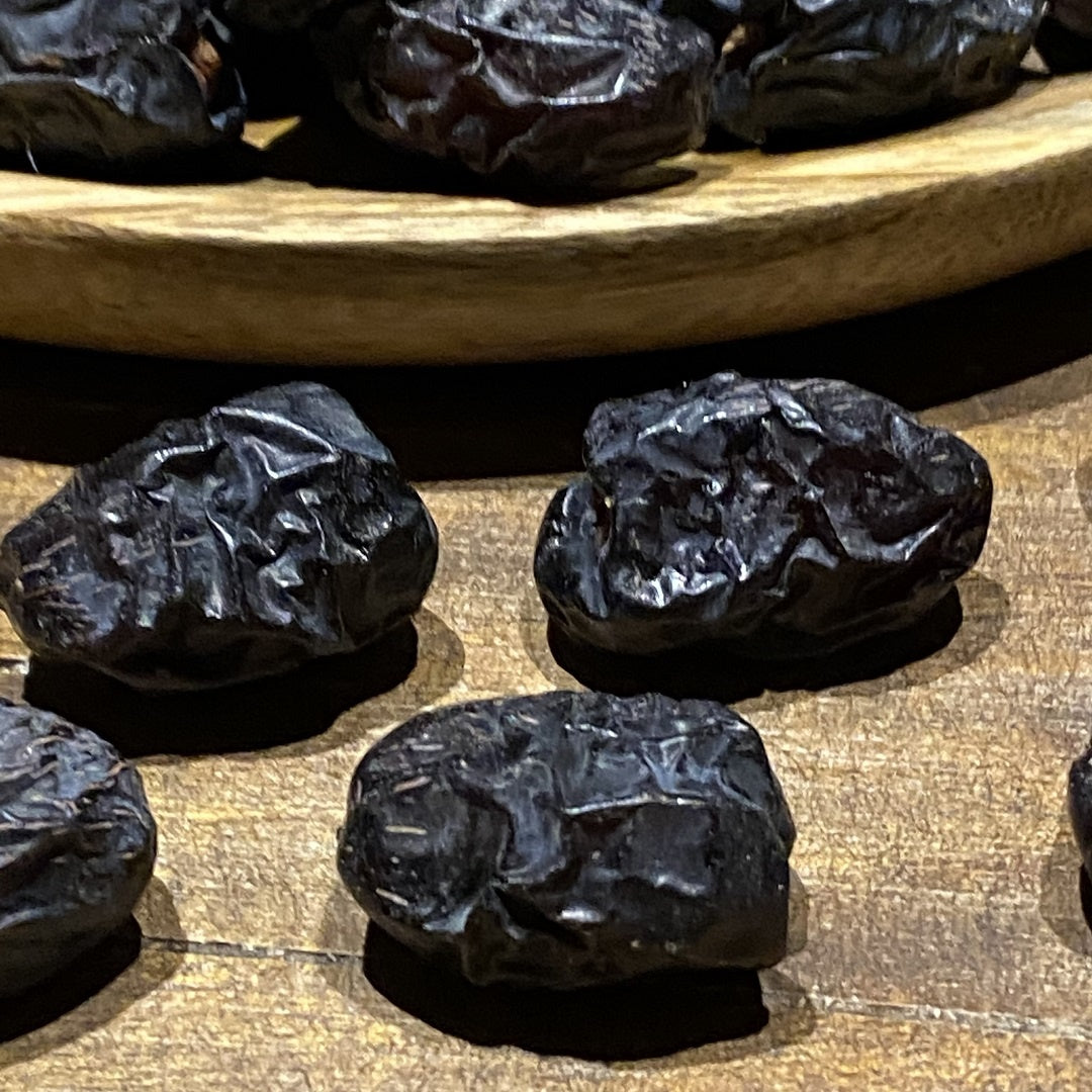 Ajwa-Datteln zeichnen sich durch eine weiche, zarte Textur und einen leicht gerösteten, karamellartigen Geschmack aus. Diese besondere Kombination macht sie zu einer echten Delikatesse – perfekt als Snack oder als Zutat in edlen orientalischen Süßspeisen.