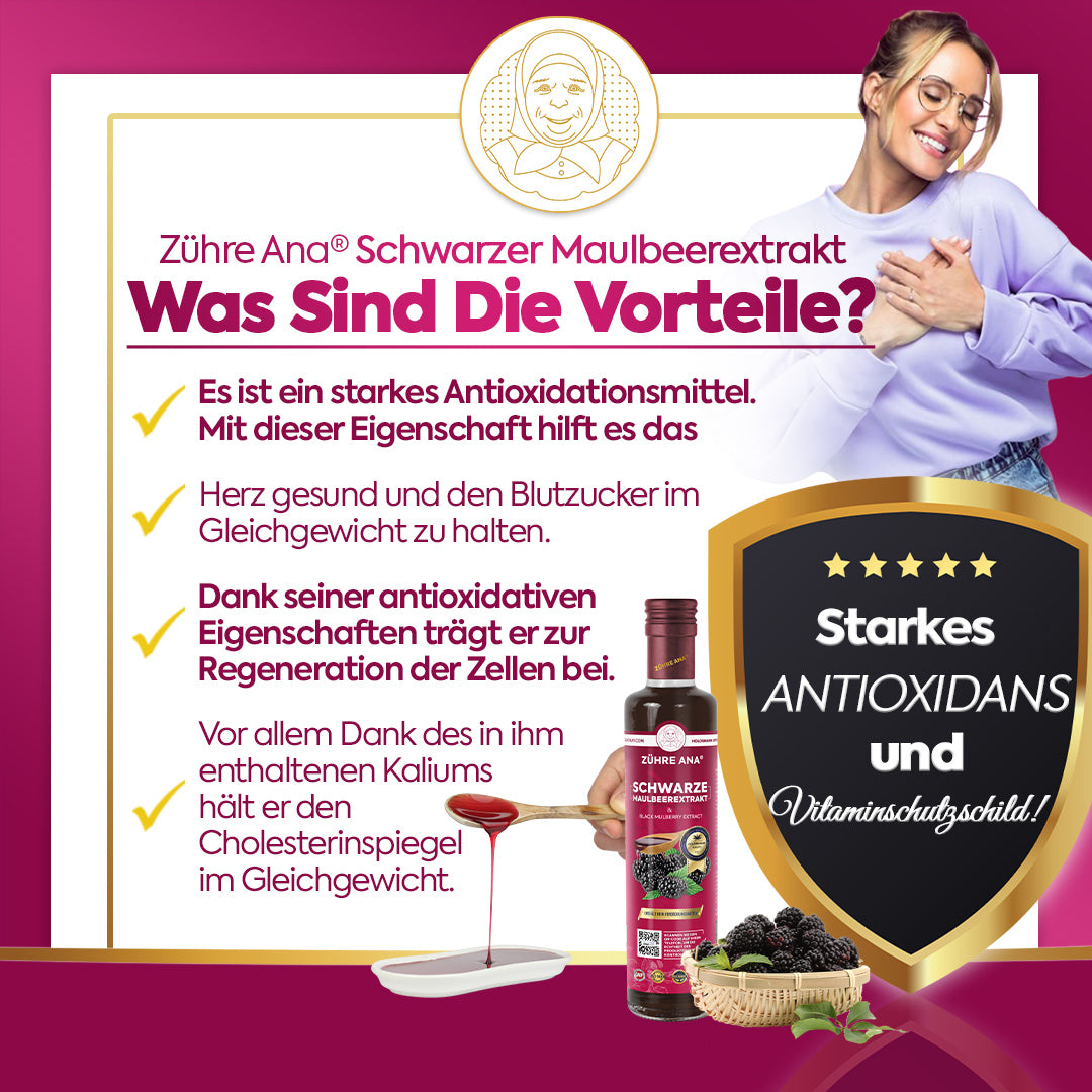 Zusammensetzung: Karadut Özü (Maulbeeren-Extrakt).