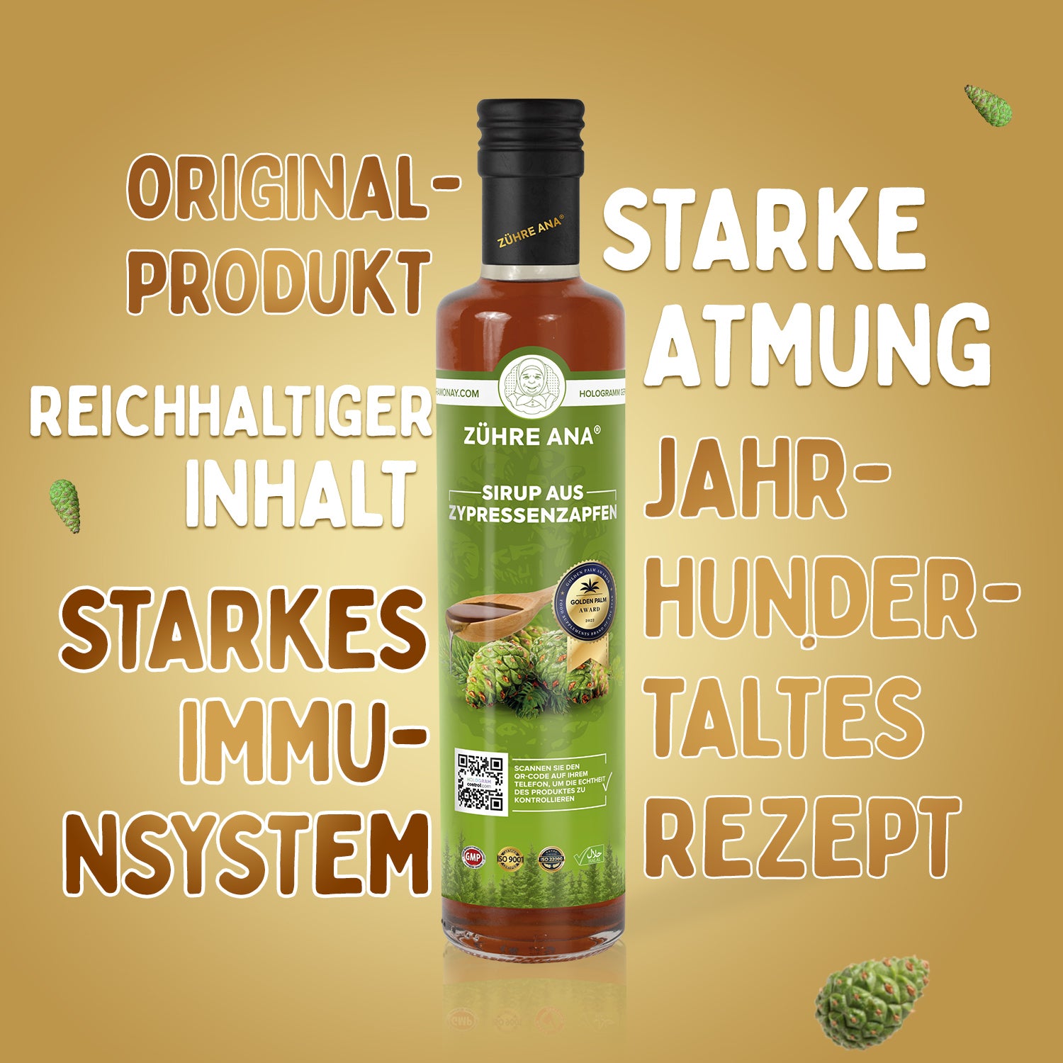 Unser Servi Kozalağı Şurubu wird aus den Extrakten von Servi Kozalağı und anderen heilkräftigen Pflanzen hergestellt. Es hat eine Vielzahl von positiven Effekten auf die Gesundheit, wie Fieber senken, Schweißproduktion anregen, Durchfall stillen und Blutstillen. Der Sirup hilft effektiv bei der Behandlung von Husten und Diabetes und stärkt das Immunsystem.