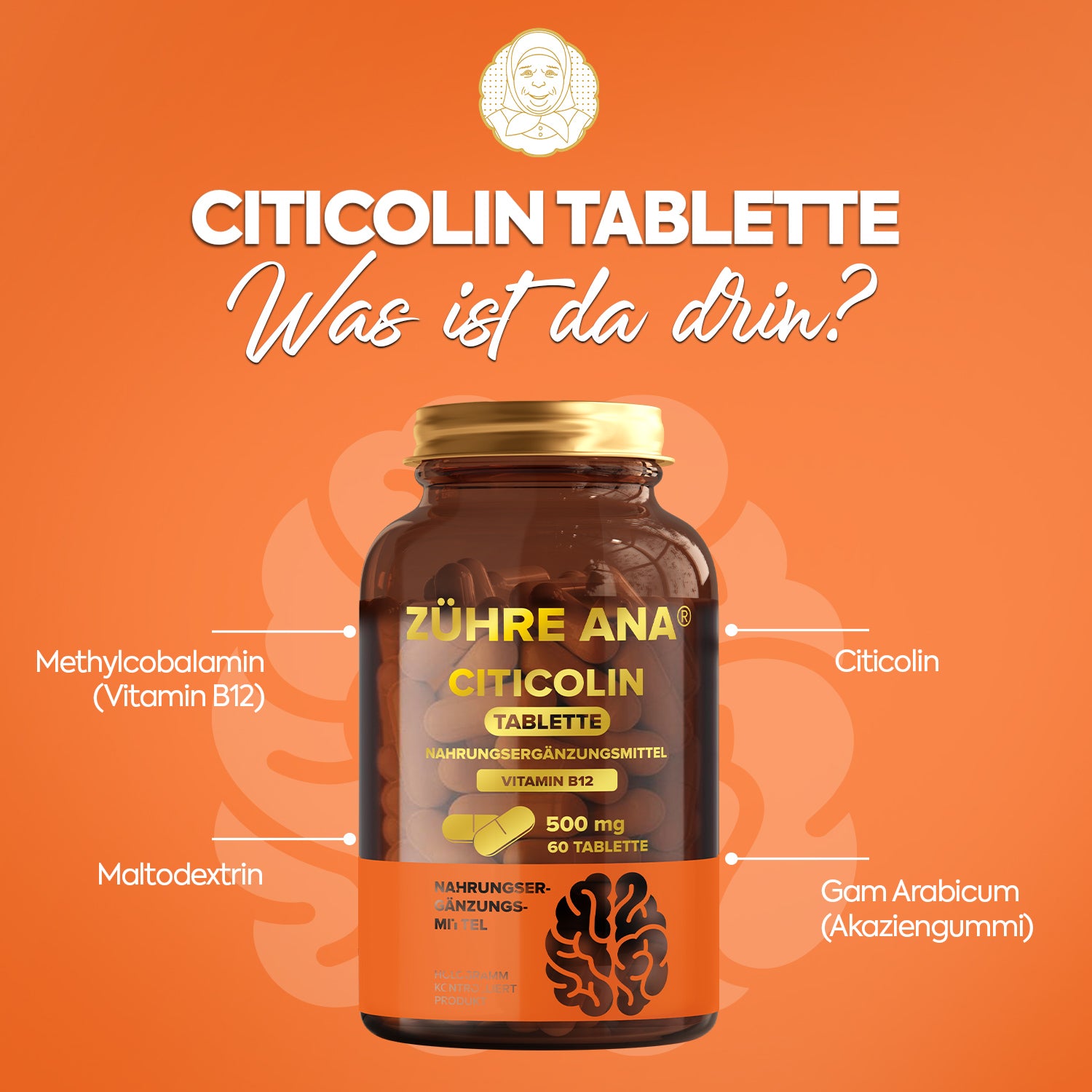 Zühre Ana Sitikolin Tablet, sitikolin ve B12 vitamini içeren, beyin ve sinir sistemi sağlığını desteklemeye yönelik formüle edilmiş bir takviye edici gıdadır. Yoğun yaşam temposunda zihinsel performans desteği arayan bireyler için uygundur.