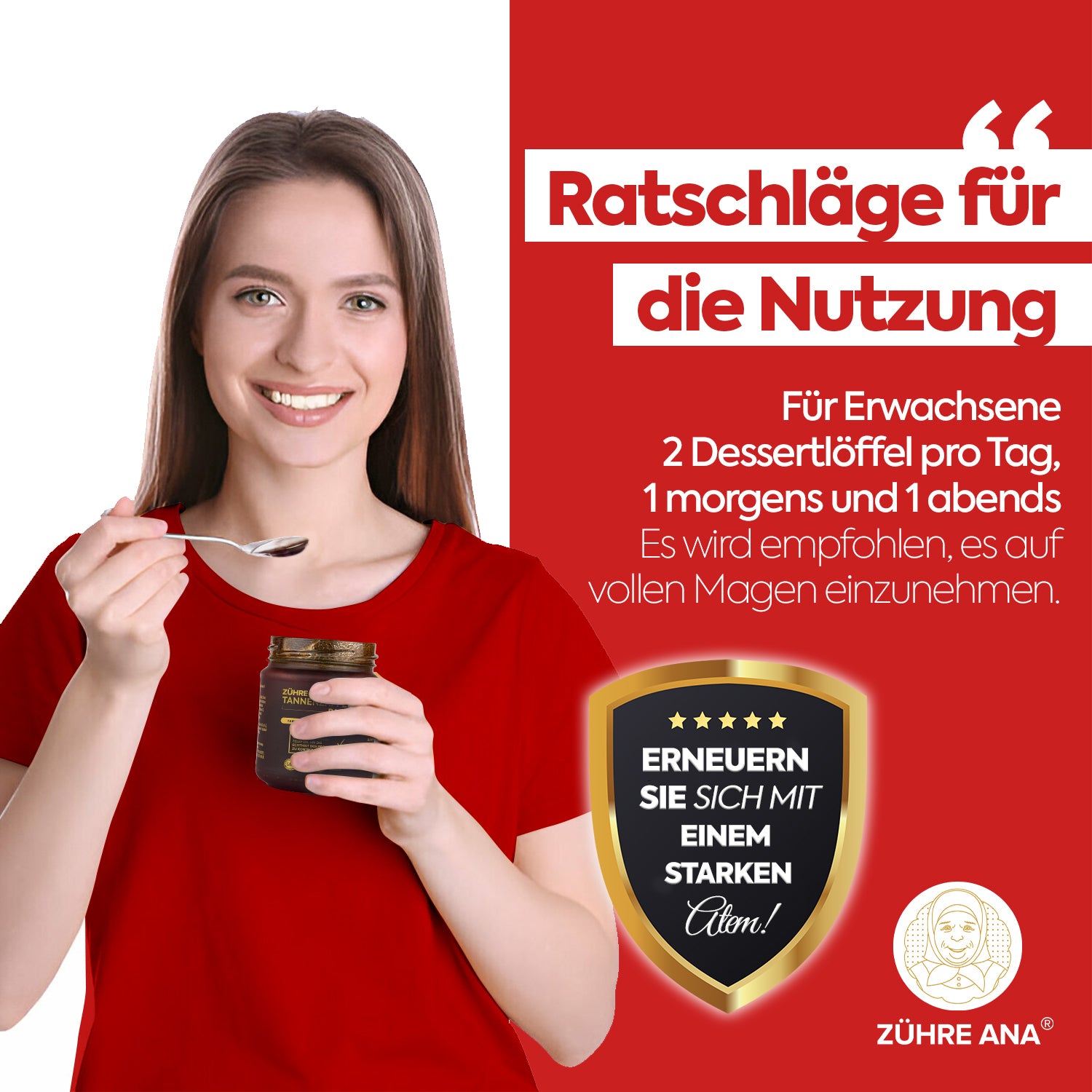 11 yaş ve üzeri yetişkinler için sabah ve akşam olmak üzere günde iki kez, birer tatlı kaşığı (toplam 10 ml) önerilir.